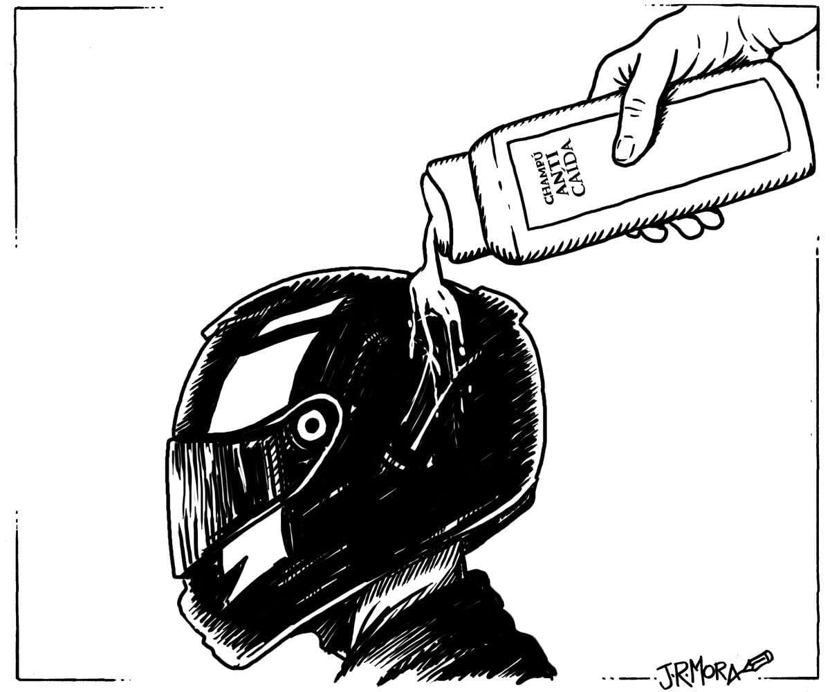 Champú anticaída. Boceto de chiste tonto para un proyecto sobre seguridad vial que no salió.