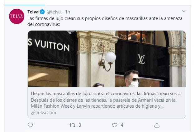 Las empresacas de pijadas para ricos tontos tampoco iban a quedarse mirando sin aprovechar la coyuntura. Han empezado a intentar colocar, ayudados de la prensa del spam de la “moda”, su línea de mascarillas viral fashion. Esta vez el chiste tonto y malo encaja perfecto, mucho más carillas.