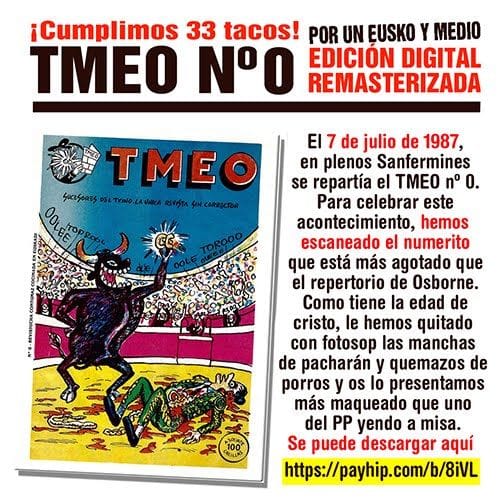El TMEO celebra su 33 cumpleaños con una reedición digital de su primer primer ejemplar que salió a la calle en Sanfermines. Fue el siglo pasado, el 7 de julio de 1987.