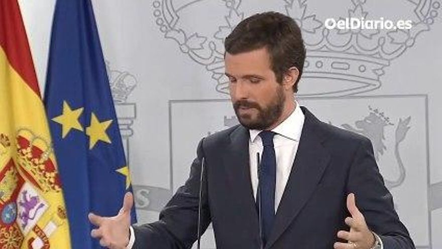 En realidad, el problema de Casado no es Podemos, sino Vox. El líder del PP se encuentra entrampado en un tortuoso dilema. Por una parte, pretende proseguir el agotador viaje al centro emprendido cinco lustros atrás por Aznar y, al mismo tiempo, teme que ese movimiento deje a Vox con las manos libres en el espacio de la derecha. En ese endemoniado círculo vicioso, el PP se ha visto arrastrado una y otra vez a rivalizar en virulencia con Vox, hasta el punto de que en ocasiones los mensajes parecen escritos por el mismo guionista. Sin embargo, las encuestas le vienen indicando con pertinacia a Casado que su apuesta no es la más acertada. Con la reciente destitución de Cayetana Álvarez de Toledo como portavoz parlamentaria, el líder conservador ha intentado enviar una señal de moderación, pero esta no será convincente mientras el PP tenga su destino ligado al de Santiago Abascal, que es el único que parece tener las ideas claras en este embrollo.